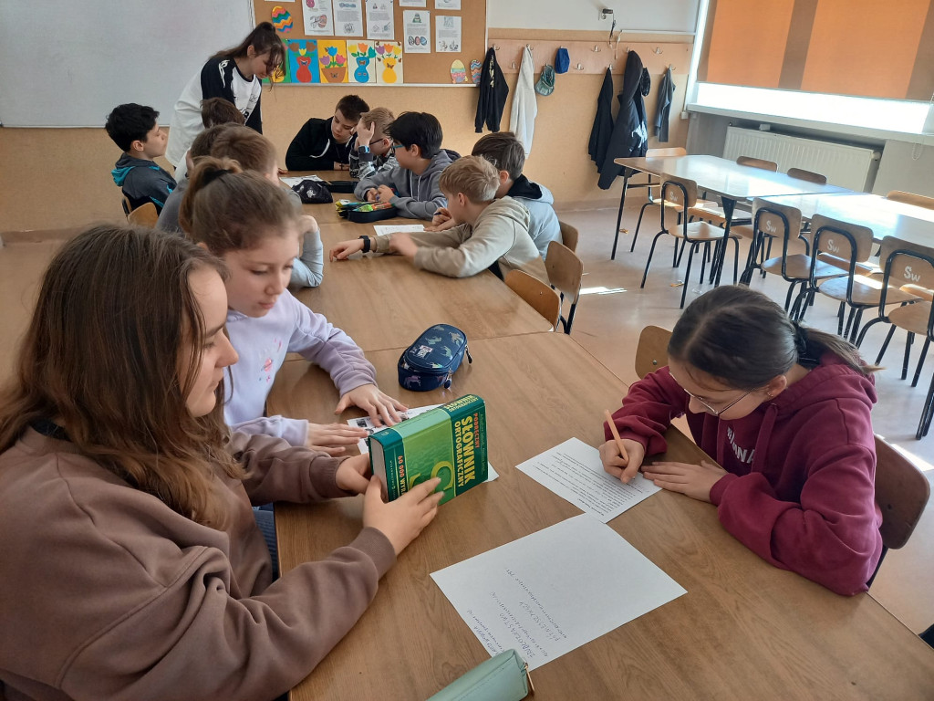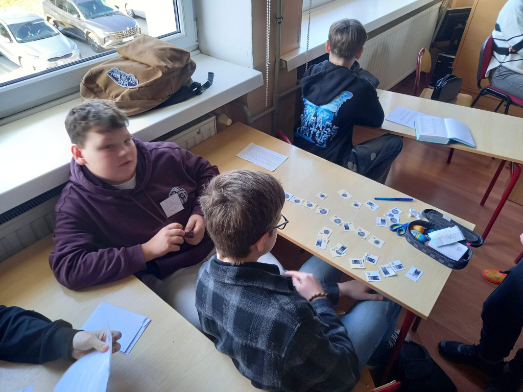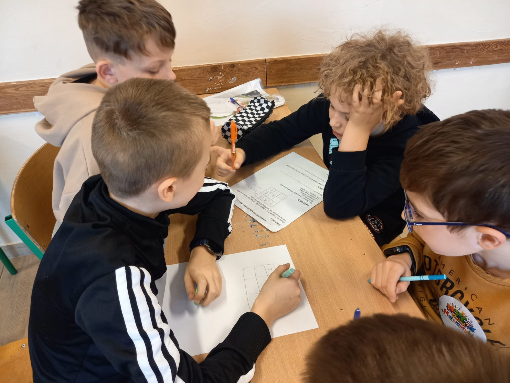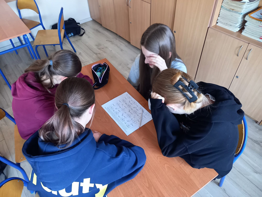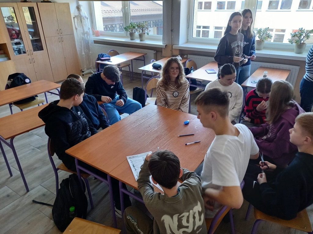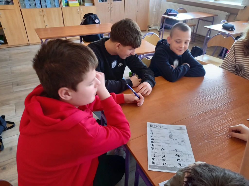 Podczas pierwszej godziny lekcyjnej klasy pracowały w grupach nad zadaniami w następujących konkurencjach: