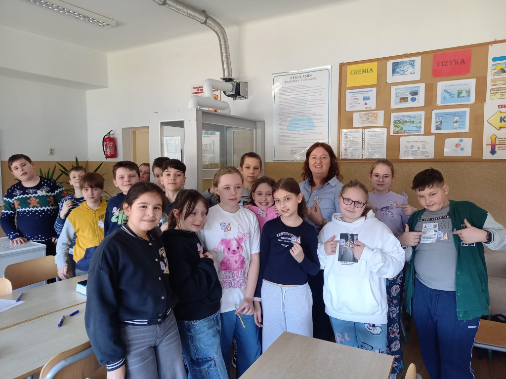 Aby wyłonić zwycięską klasę SZKOLNEGO DNIA MATEMATYKI były zsumowane procenty uzyskane za 6 konkurencji z pierwszej lekcji, matematyczne stacje zadaniowe, procenty uzyskane za wiosenny plakat oraz za LOGO Szkolnego Dnia Matematyki.